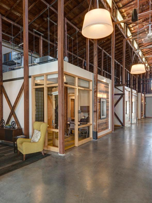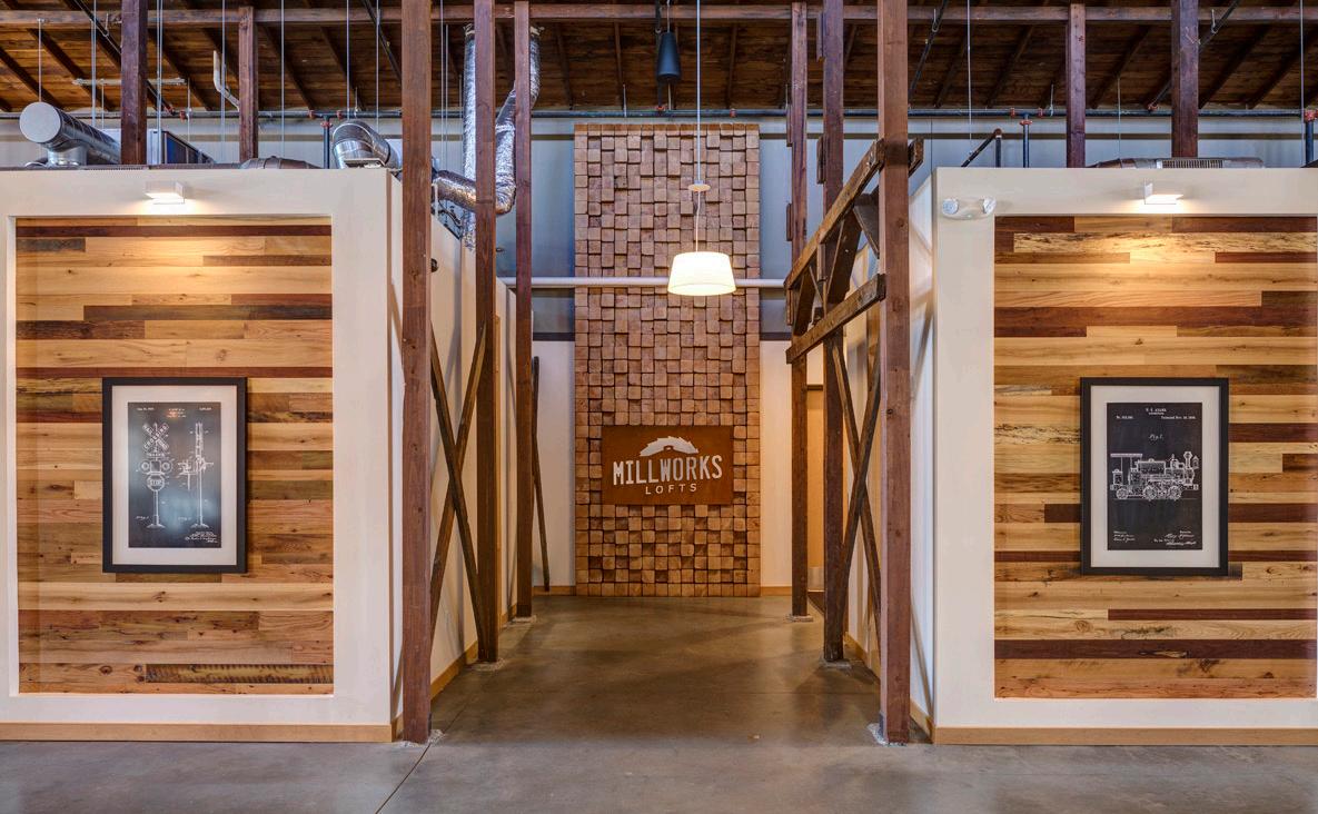 Millworks provides modern amenities while showcasing the historic character of the buildings, with exposed brick walls, and tongue and groove wood ceilings. The restoration kept the historic character of the neighborhood intact, with Millworks’ thoughtful design and proximity to light rail transit making the working space an attractive option for many.