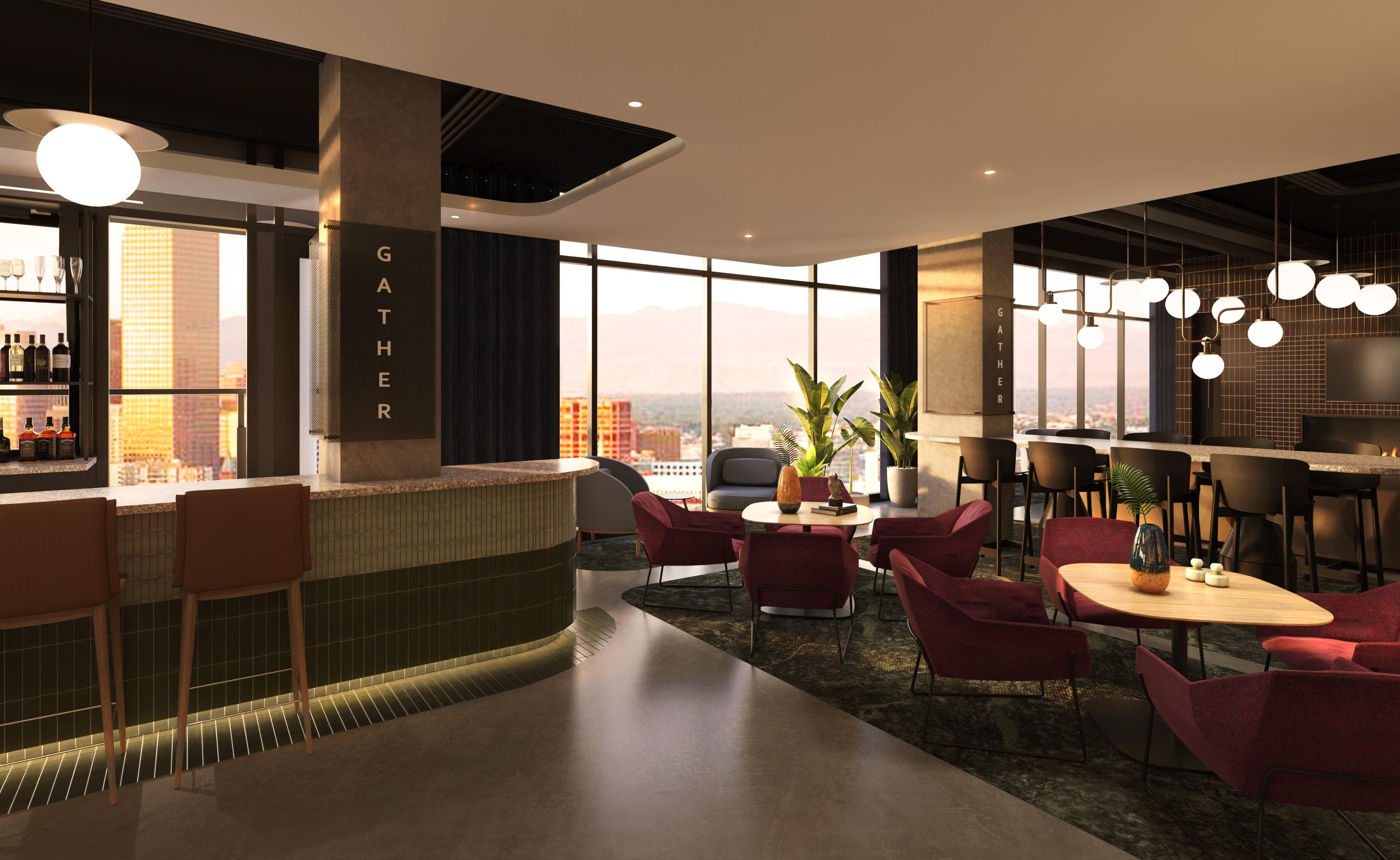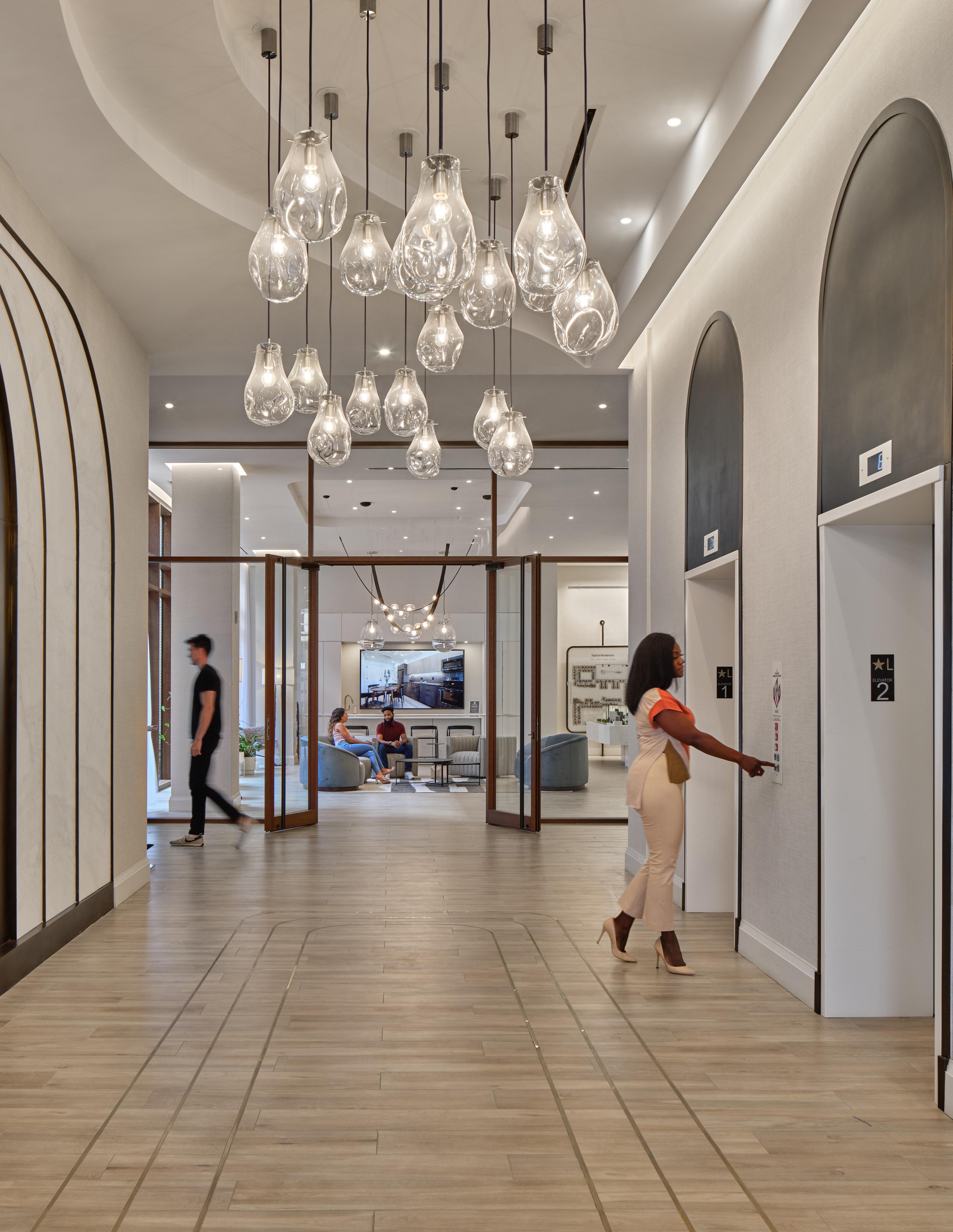 A 23-story tower with common area shared amenities located on floors 1, 2, 3 and 23.