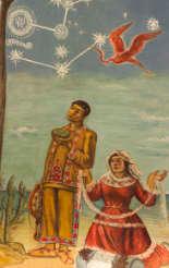 OafrescodotetodaCapelaMortemaNossaSe‐nhoradoBrasilnocentroelateralmente,repre‐sentantesdeváriosEstadosbrasileirosprestan‐docultoàVirgem.Paimestudouadisposiçãodasestre‐lasnocéuàépocadaNatividadeeareproduziufielmen‐te.InteressanteeinovadoraquiéafiguradaVirgem,re‐tratadacomtraçosdecabloca,olhosapertados,malares salientes.Assimsãotambémpintadososoutrosperso‐nagens,istoé,onortista,arendeira,oamazonense,o gaúchocadaumdelesdelescomosseustiposfísicosca‐racteristicoseroupaslocais:distribuídospelasvárias cenasestãootatu,tamanduá,aonça,araras,papagaios, tucanos,umaalegriadecoreseformas,semprecomo empregodecertoprimitivismo,confirmandomaisuma vezseresteparaoartistaoestilonacional.