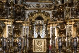 Insideisthecarvedwoodenhighaltarthatbelongedtothe ChurchofSant'AnainMogidasCruzes,withanestimated dateof1740,accordingtotheFrenchwriterGermainBazin inhisworkL'ArchitectureReligieuseBaroqueauBrésil.
