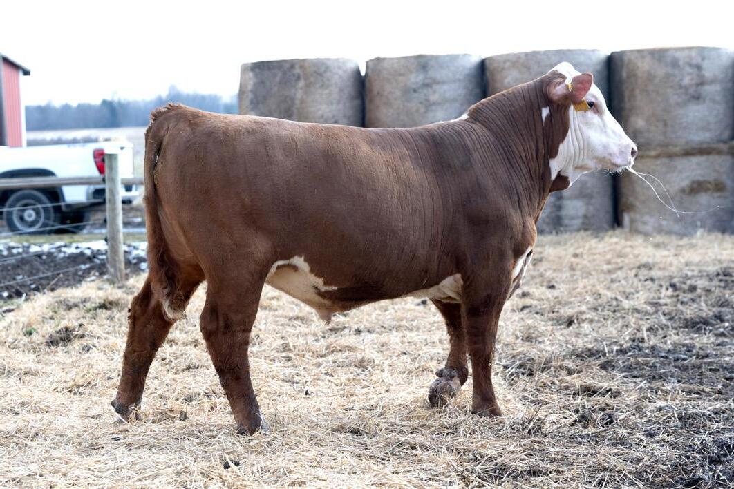 Lot 32, a JDH AH Prominent 21G ET son, will work well for the progressive breeder who wants to build an efficient and moderate cowherd with the ability to create high-choice cattle in a forage-based setting. He is a “cow” bull meaning his calves will be born stout, rugged, and wellmuscled. His maternal grand dam continues to be one of our favorite cows, and her daughters appear to be making a significant impact in our breeding program. Homozygous Polled.