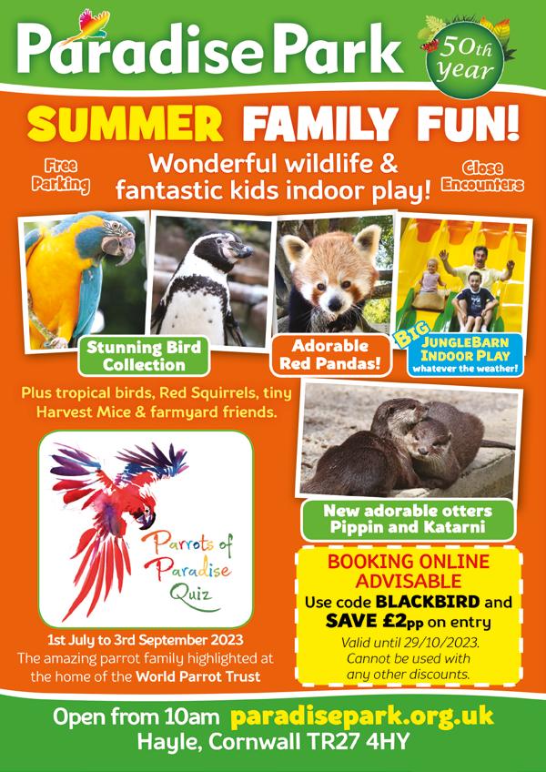 September 2023 32,000 copies across Cornwall and on-line Pie Stay for a full day to enjoy: Kids Adventure Playground Seal Hosptial & Rescue Centre and so much more! Beav Pr ect Cornwall’s fun family day out! SCAN TO WATCH OUR VIDEO Penguins Cornish Seal Sanctuary, Gweek, nr Helston, Cornwall, TR12 6UG. T: 01326 221 361 Book online in advance: seal sanc tuary.sealifetrust.org Gweek Magazine cover takeover.pdf 1 20/06/2023 13:49