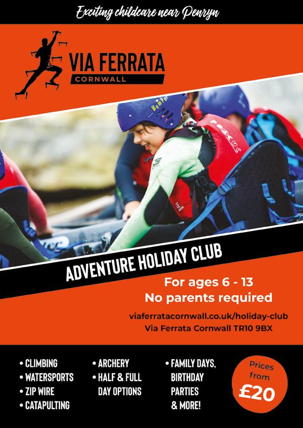 Via Ferrata Treat your children to Cornwall’s most exciting childcare! Book a half or full day, simply drop them off for an epic time. viaferratacornwall.co.uk/holiday-club/. For family days out take on the Zip Wire Safari or Via Ferrata.