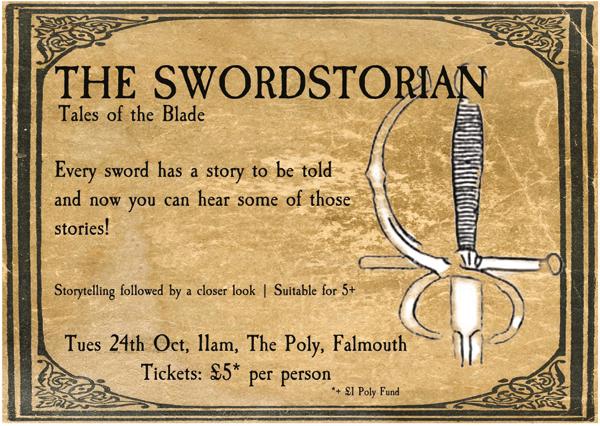24 Oct at 11am: The Swordstorian: Tales of the Blade Join the Swordstorian for tales of blades forged long ago. Expect dashing heroes and scurvy villains, myths, legends and a few facts. After the tales, take a closer look at some of the weapons from the stories. Suitable for age 5+. Swashbuckling Cornwall specialise in bringing the past to life in a creative way.