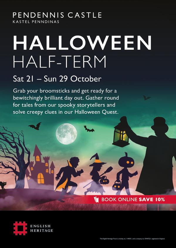 Pendennis Castle, Falmouth, 21 to 29 Oct: Grab your broomsticks and get ready for a bewitchingly brilliant day out! Gather round for tales from spooky storytellers and solve creepy clues in the Halloween Quest. There’s so much to enjoy at Pendennis too - be transported back to the Second World War in the recreated Battery Observation Post bunker; trace the development of the castle’s weaponry and defences; and discover the castle-themed soft play next to the café. Book online and save 10% english-heritage.org.uk/Pendennis