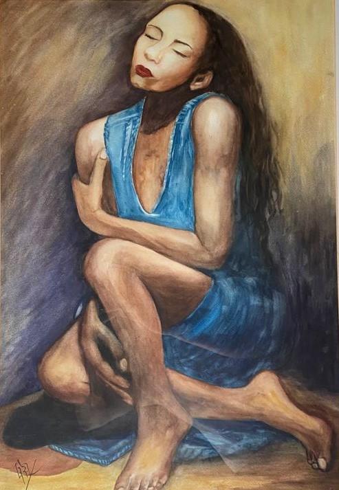 Negra de Jeans, Técnica mista sobre aquarela, 60 x 80cm, 2019
