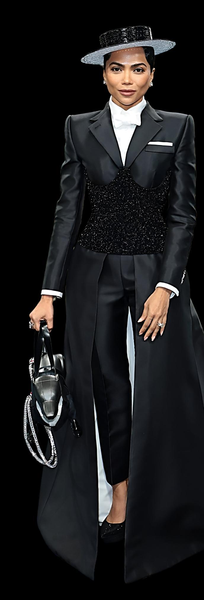 WhileMonaPatel captivatedtheMetGala 2025withheravant-garde ThomBrowneensemble whichshowcasedaperfect fusionoffashionand futurismbyincorporating techintoherlookwitha roboticdogandvertebrae, JennaOrtegablewusaway withherperfectlytailored andon-themeruler Balmaingown.