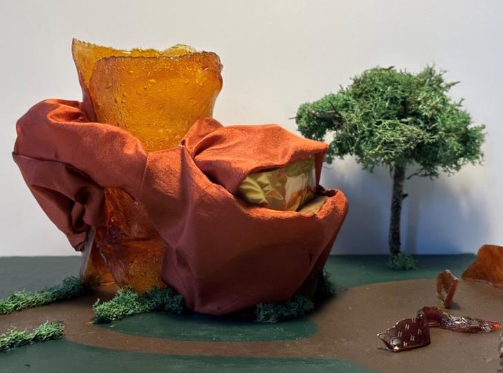 From here, we were to transform our two-dimensional pieces and create three-dimensional abstract structures that best represent the song. In this process, I was inspired mostly by three of my painted pieces. I took my concepts of blending, structure, and warmth and created multiple study models.