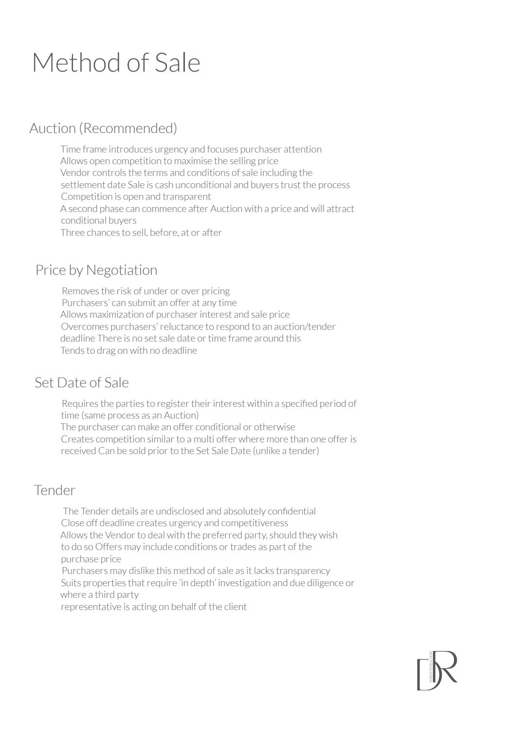 The most effective sales method in the current market is sale by public auction The first stage of our marketing process is crafted to ensure the following benefits: