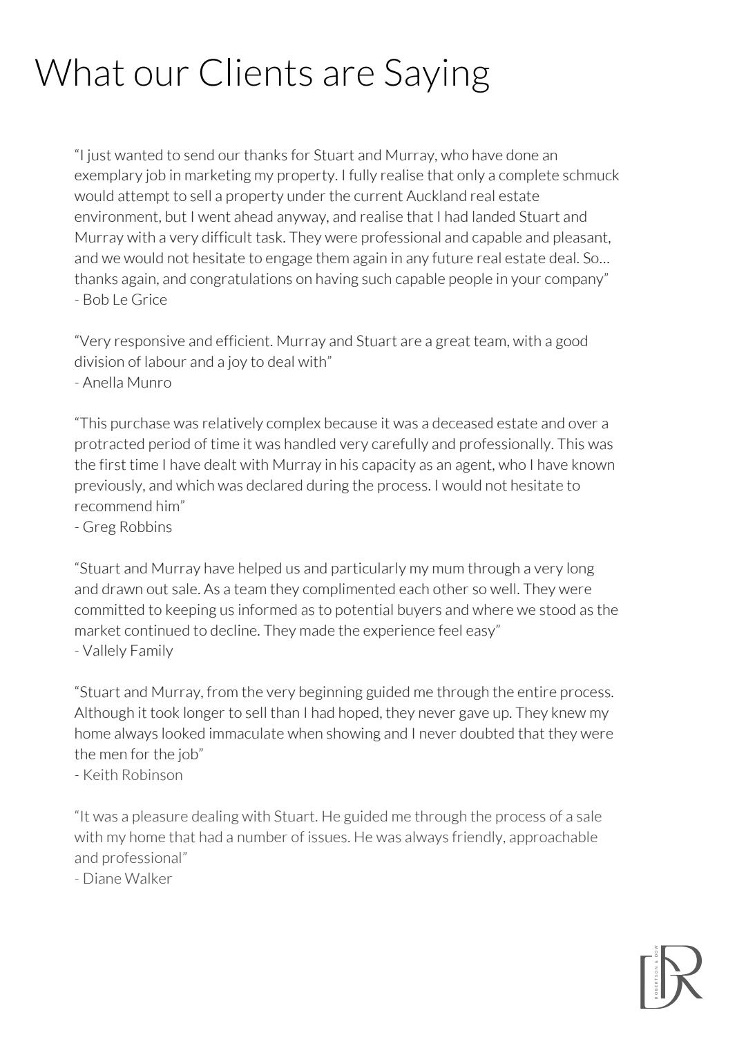 The following pages include recent suburb sales data and demographics, some sugges ons for a marke ng investment, and a li le bit of informa on about us, along with genuine feedback from our clients following the sale of their homes