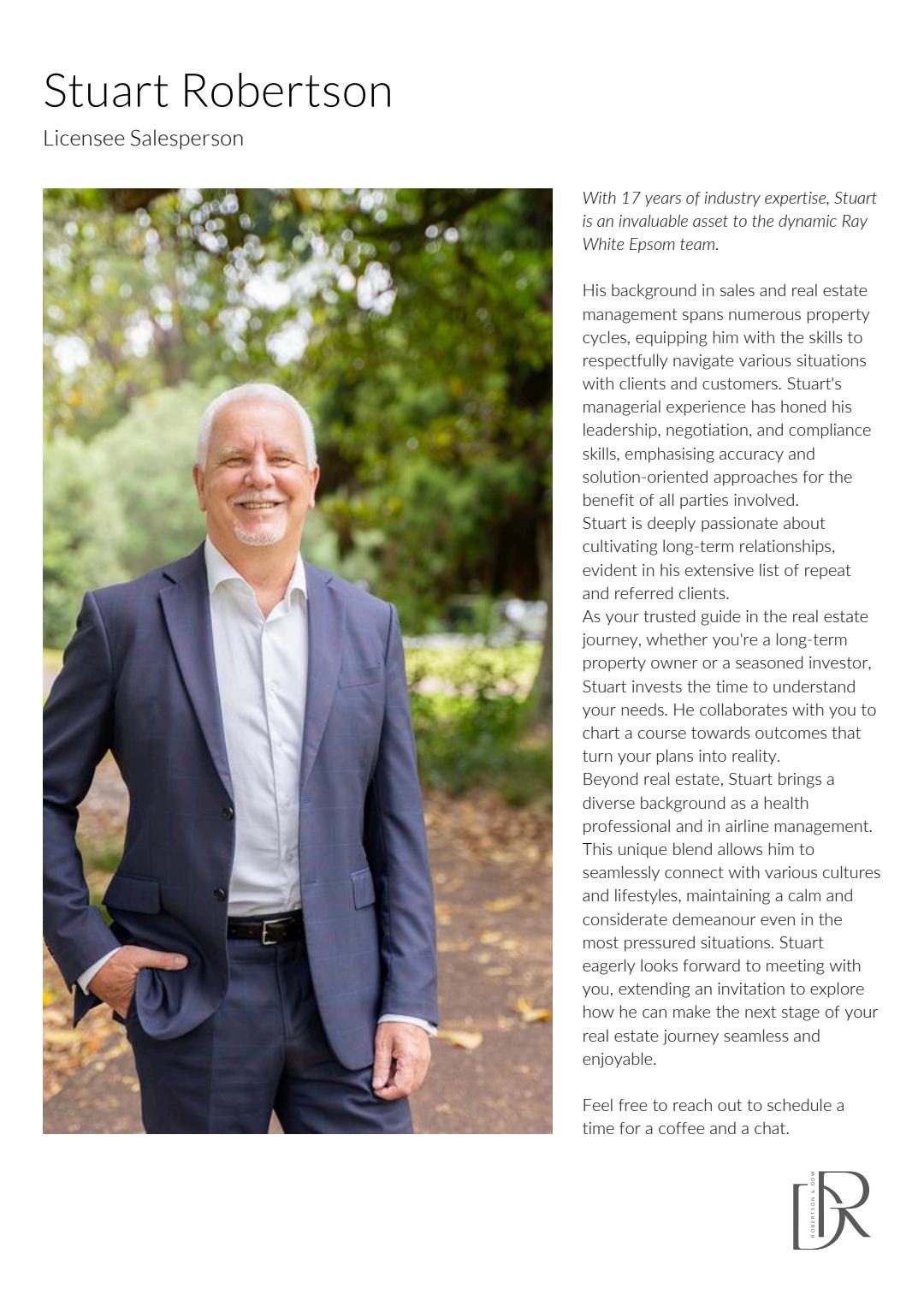 On behalf of our team and Ray White’s Now Epsom, we look forward to working with you.