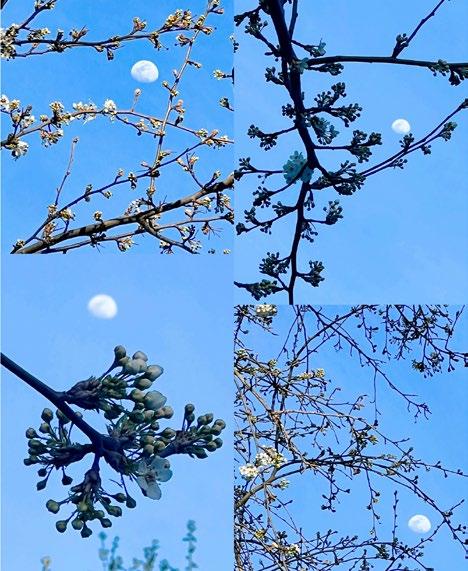 In the moments before sunset, the moon’s light gently reflects off the ponds and tree-lined streets of Blackhawk, while the yellow mustard flowers and cherry blossoms add splashes of color to the landscape. The distant silhouette of Mount Diablo, the lush golf courses and the blossoming trees contribute to the tranquil charm of the evening. As the spring moon rises higher, the landscape transforms into a glowing masterpiece, bringing a sense of calm and renewal to this picturesque town. The cool evening breeze carries the scent of blooming flowers, making it the perfect time for a quiet walk or a moment of reflection under the night sky.
