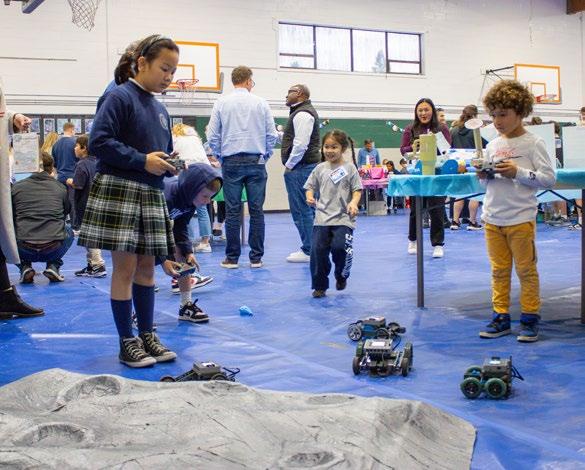 The celebration of science didn’t stop there! Following the Science Fair, the entire school community came together for an unforgettable STEAM Night, which embraced an exciting space theme. The gym was transformed into a cosmic wonderland, with space-themed artwork created by students in grades TK-5 decorating the walls, setting the stage for an evening of hands-on discovery.