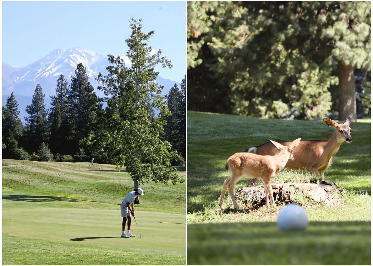 Between stops, we visited the Headwaters at the base of the mountain, where crystal-clear spring water bubbled up from the earth. Locals filled jugs while we cupped our hands for a sip— cold, pure, and tasting of the mountain itself. Our days found an easy flow—time by Siskiyou Lake and an afternoon at the Mount Shasta Resort, where the kids enjoyed a round of golf while we soaked in the views, joined by a few surprise visitors: deer grazing calmly on the course.
