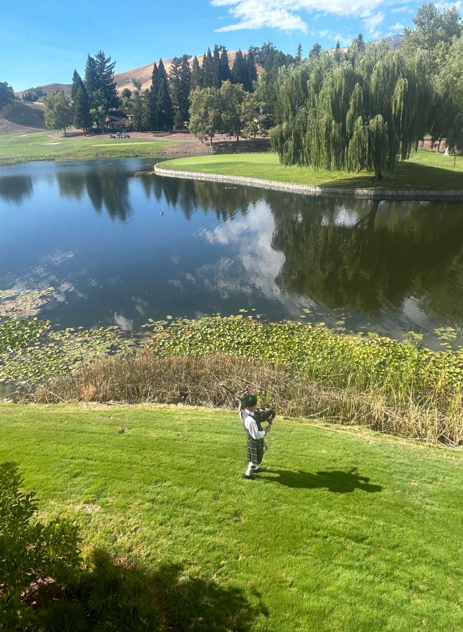 A highlight of the evening was legendary sportscaster Mark Ibanez, who brought excitement and generosity to the live auction. Guests were also treated to the stirring sound of a bagpiper performing on the 18th green just before dinner.