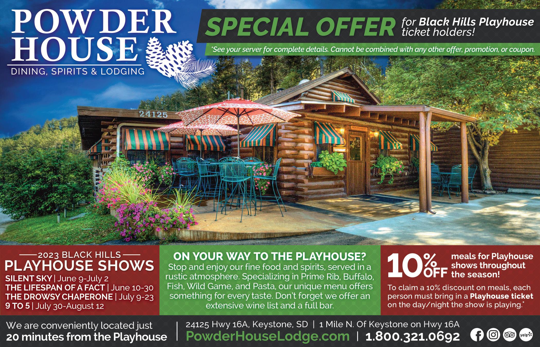 We are excited that you are here to experience the beauty of South Dakota theatre and hope you enjoy this season at the Black Hills Playhouse.