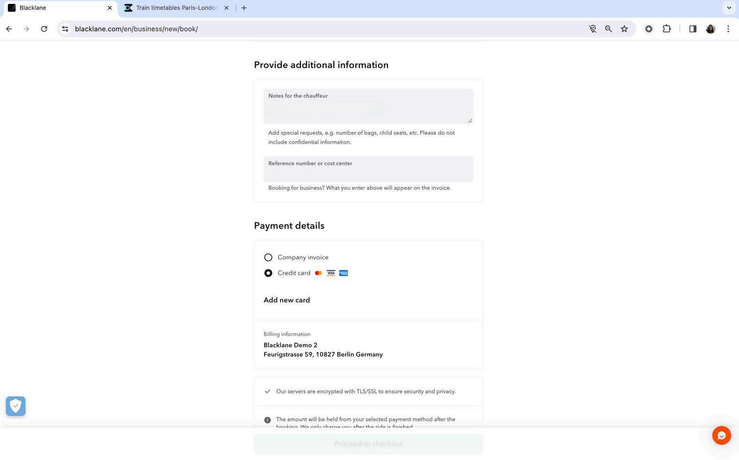 Blacklane accepts Visa Maestro Mastercard and American Express Payment details