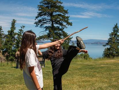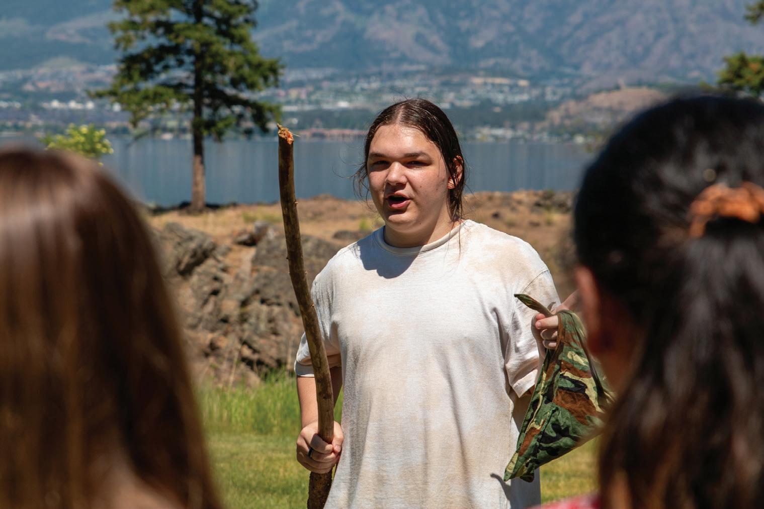 learning environment for the youth to develop the core skills within the BC curriculum. This community participated in activities that focused on leadership skills and how to share Indigenous knowledge within the community. These students have led students across the district, practicing their mentorship skills in three separate events: 1. Leading the Grade 6’s at RMS in circle and the Wellness Path. 2. Leading their Indigenous leader peers from Mount Boucherie, École George Elliot, and École Kelowna Secondary in stations of Indigenous games, natural dyes and drumming. 3. Leading the Grade 6’s at RMS in “Culture is Medicine” day at Bertram Park. They have dedicated their time learning, organizing, and directing activities relating to the Wellness Path, local indigenous plants, natural plant dyes, various Indigenous games, and cultural traditions. It was evident that student confidence in leading, designing and problem solving improved greatly throughout these activities. This experience has provided positive learning for all involved. Zaiden, a youth leader within the community, thought it was “pretty cool” how the mental state of the RMS students improved through their participation in the Wellness Pathway. Grade 6 students, Jessie and Farnaz, were inspired by the activities, saying that their favourite activity was Run and Scream and they felt they could teach this activity to their classmates. Manreet, Mana, and Seeret shared that the Wellness Path was fun and enjoyed being outside in nature.