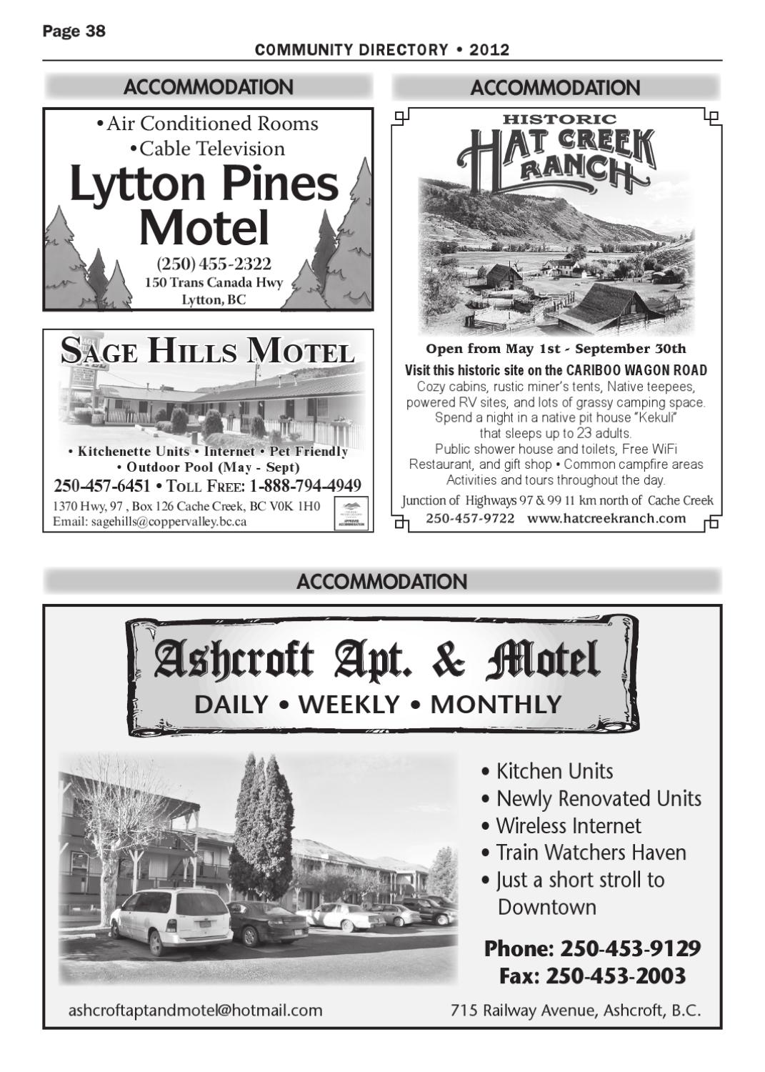 4f[VebYg4cg!@bgX_ $!),9 s 7%%+,9 s -/.4(,9 s +ITCHEN 5NITS s .EWLY 2ENOVATED 5NITS s 7IRELESS )NTERNET s 4RAIN 7ATCHERS (AVEN s *UST A SHORT STROLL TO $OWNTOWN Phone: 250-453-9129 Fax: 250-453-2003 ASHCROFTAPTANDMOTEL HOTMAILCOM 2AILWAY !VENUE !SHCROFT "#