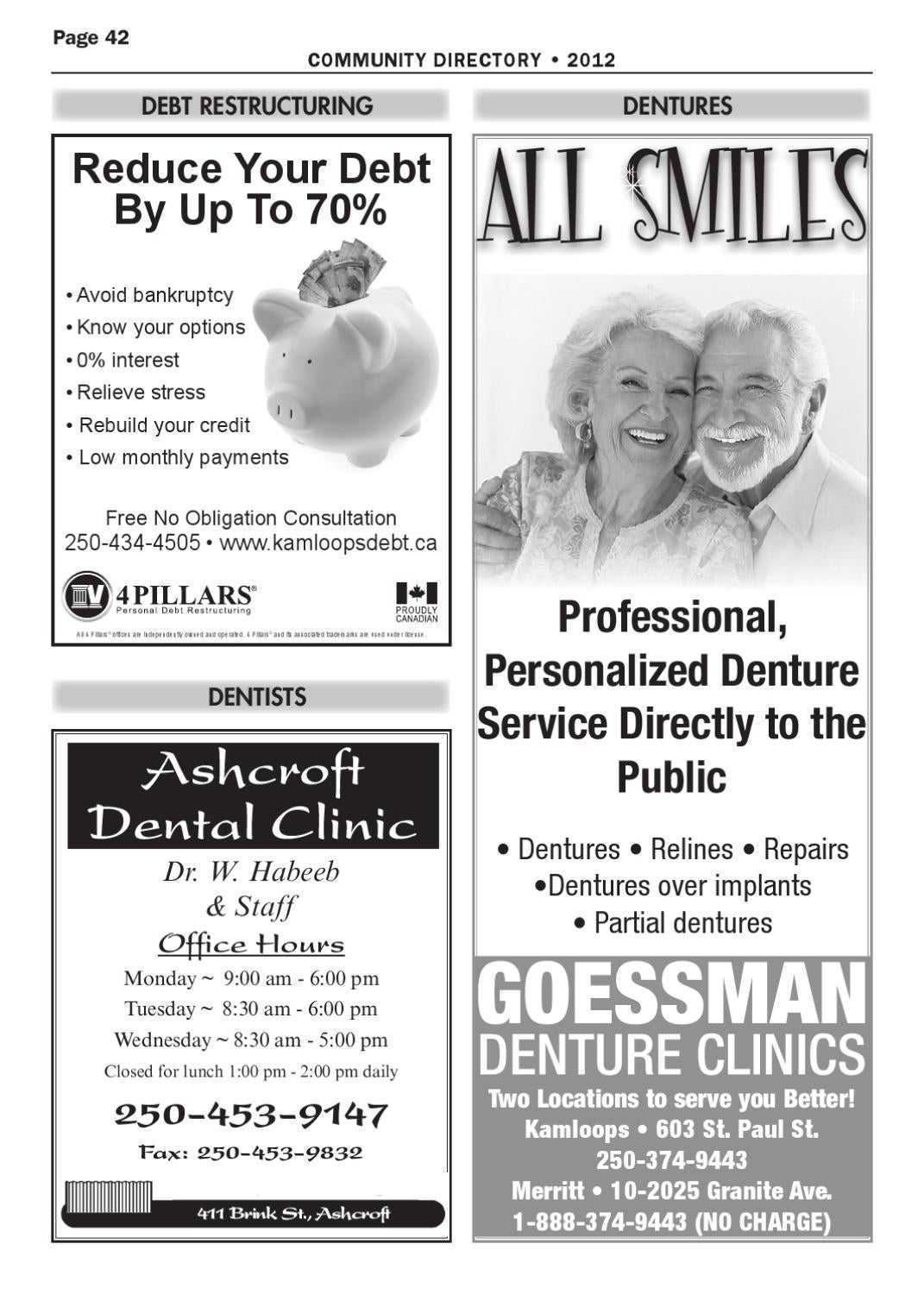 GOESSMAN DENTURE CLINICS Two Locations to serve you Better! Kamloops • 603 St. Paul St. 250-374-9443 Merritt • 10-2025 Granite Ave. 1-888-374-9443 (NO CHARGE)