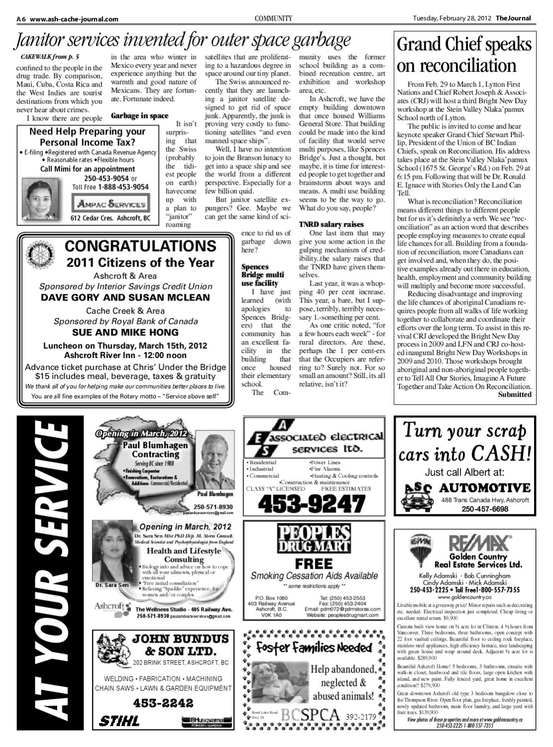 February 28, 2012 edition of the Ashcroft Cache Creek Journal