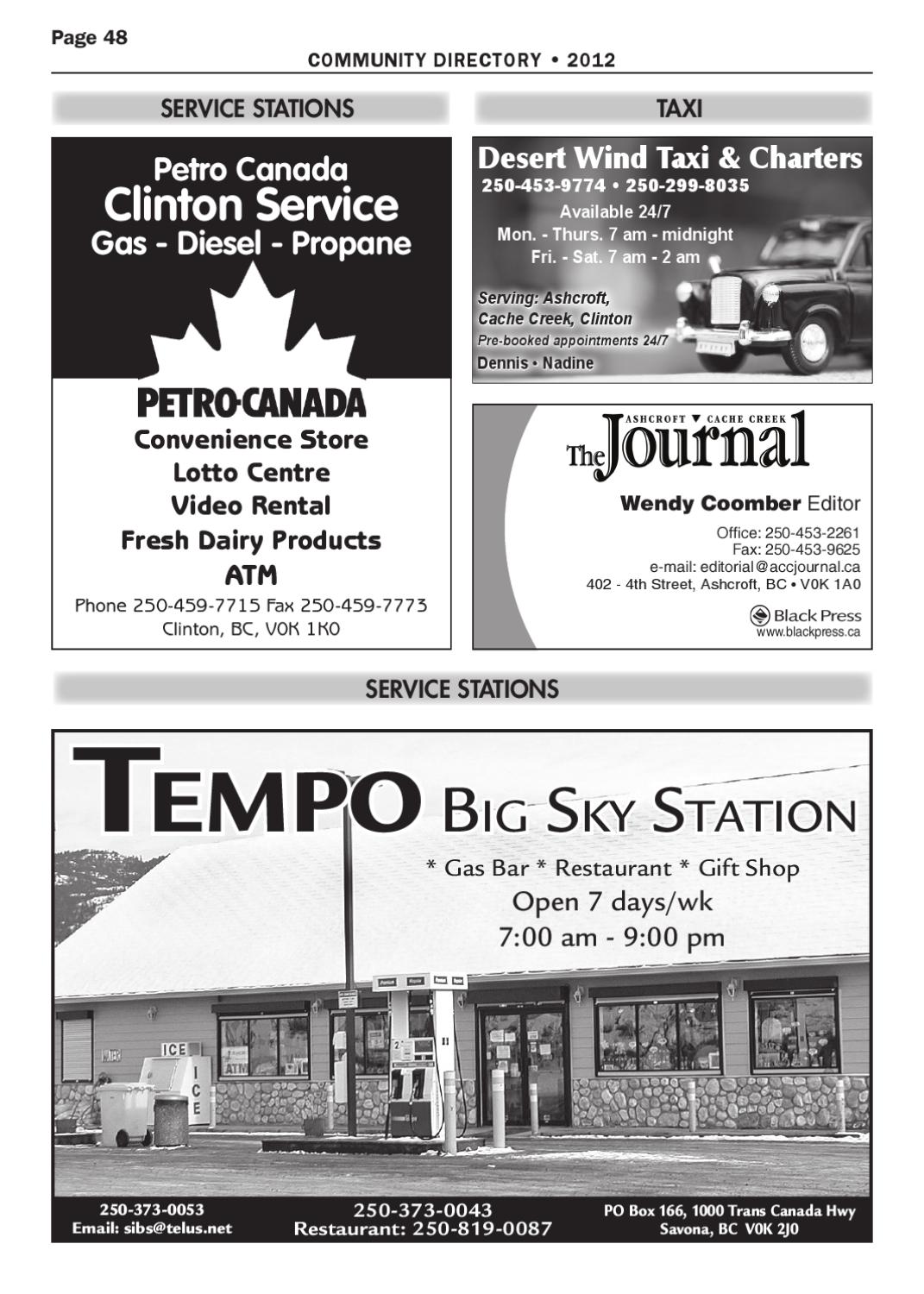 Wendy Coomber Editor Office: 250-453-2261 Fax: 250-453-9625 e-mail: editorial@accjournal.ca TH 3TREET !SHCROFT "# s 6+ !