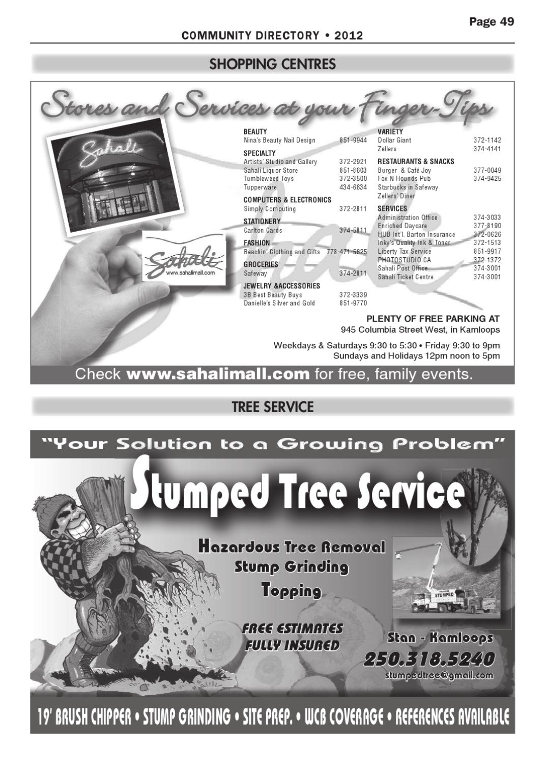 SERVICES Administration Office Enriched Daycare HUB Int’l. Barton Insurance Inky’s Quality Ink & Toner Liberty Tax Service PHOTOSTUDIO.CA Sahali Post Office Sahali Ticket Centre