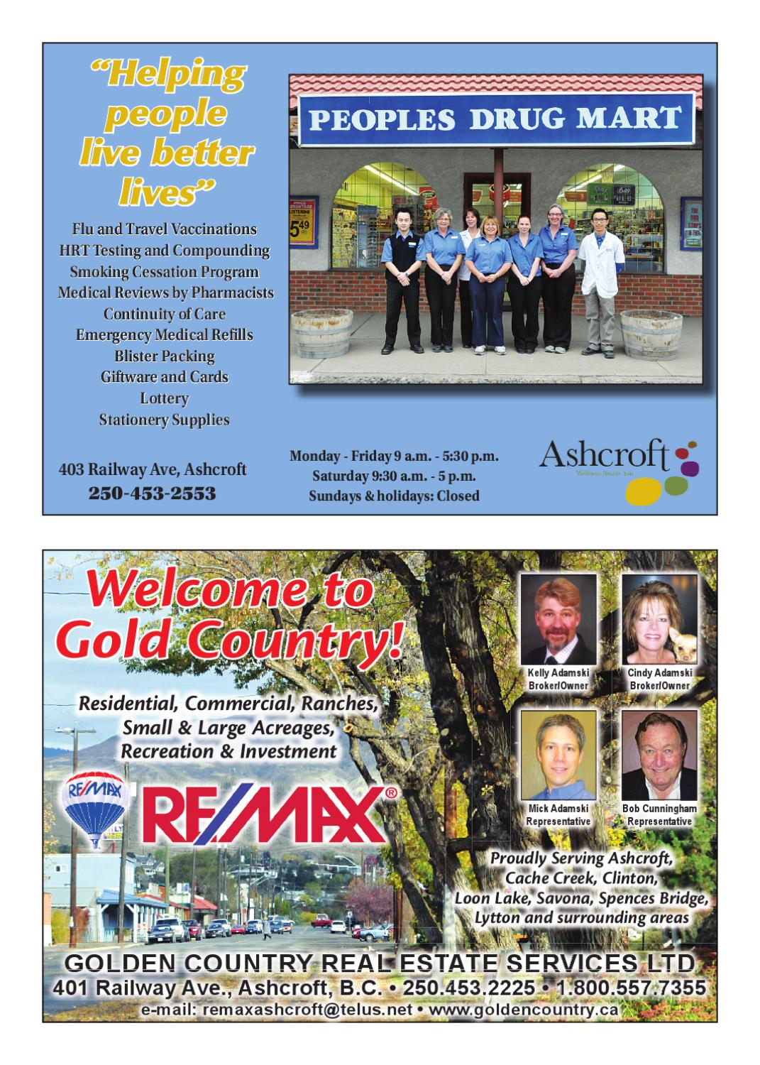 401 Railway Ave., Ashcroft, B.C. • 250.453.2225 453.2225 • 1.800.557.7355 45 453.2225 1.800.557.7355 e-mail: remaxashcroft@telus.net • www.goldencountry.ca ww.goldencountry.ca ww.goldencountry.ca
