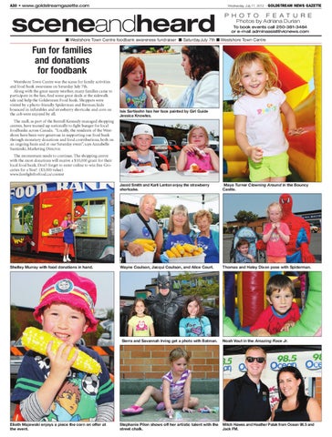 Fun for families and donations for foodbank Westshore Town Centre was the scene for family activities and food bank awareness on Saturday July 7th. Along with the great sunny weather, many families came to participate in the fun, find some great deals at the sidewalk sale and help the Goldstream Food bank. Shoppers were visited by a photo-friendly Spiderman and Batman; kids bounced in inflatables and strawberry shortcake and corn on the cob were enjoyed by all.