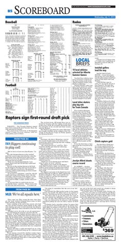 The six-foot-seven, 197-pound Ross was selected by Toronto with the eighth overall pick in this year’s draft. He averaged 16.4 points and 6.4 rebounds in his second and final season with the Huskies. The Raptors open their five-game NBA Summer League schedule on the campus of the University of Nevada-Las Vegas on Friday against the Houston Rockets. well.” Peterman, who threw 130 pitches, won for the second straight game as he allowed two earned runs while scattering nine hits, walking four and fanning four. “He’s been good for us,” said Fay. “He’s found his rhythm and when he’s throwing strikes he’s tough.” And the team continues to play well, at the plate and on defence. Once again they turned in a pair of spectacular defensive plays as second baseman Denver Wik ranged far to his left to snare a lopping line drive in the first inning and right-fielder Jaret Chatwood made a outstanding diving catch to end the seventh inning with two men on. “Right now we’re playing loose and that’s when we play our best,” said Fay. Wik added a pair of hits for the Riggers while Matt Fay had a single, was hit once and walked. Jason Chatwood singled and walked twice while Curtis Mazurkewich had a single and a walk. The Riggers open play in the Kamloops tournament Thursday at 3:30 p.m. (MDT) against the Northwest Honkers. They clash with Everett Friday at 12:45 p.m. and the host Kamloops squad Saturday at 10 a.m. They play Tuesday in St. Albert and return home July 24 against Fort Saskatchewan. The Red Deer Stags are at home Thursday when they host Fort Saskatchewan at 7:30 p.m. drode@reddeeradvocate.com