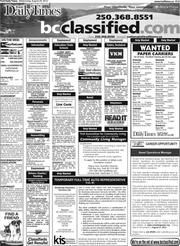 fax 250.368.8550 email nationals@trailtimes.ca Employment Employment Help Wanted Help Wanted