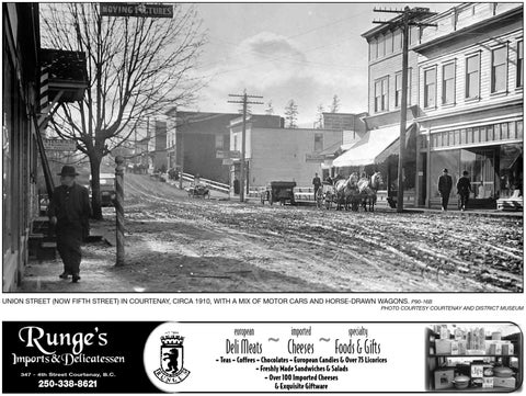 UNION STREET (NOW FIFTH STREET) IN COURTENAY, CIRCA 1910, WITH A MIX OF MOTOR CARS AND HORSE-DRAWN WAGONS. P90-16B PHOTO COURTESY COURTENAY AND DISTRICT MUSEUM