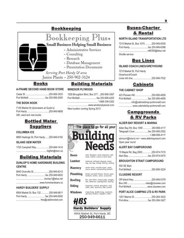 1528 Broughton Blvd, Box 277.....250-956-3367 Port McNeill............................fax 250-956-4205 ................................................. 1-888-338-3322 ................................. www.windsorplywood.com New location coming Spring 2013