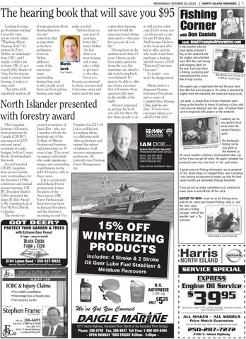North Islander presented with forestry award The Canadian Institute of Forestry/ Institut forestier du Canada (CIF-IFC) announced its 2013 national award recipients at a gala banquet held in Corner Brook, Newfoundland this week. Several hundred CIF-IFC members from across Canada were in attendance for the Institute’s 105th conference and annual general meeting. CIFIFC President Michel Vallée presented the James M. Kitz Award to Mr. Jonathan Lok of Port McNeil, British Columbia. The award was