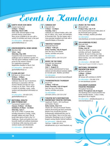Throughout Kamloops Varies Throughout July & August The Kamloops Arts Council presents free family-friendly theatre, 5 days a week, throughout July & August. For information: info@kamloopsarts.ca www.kamloopsarts.ca