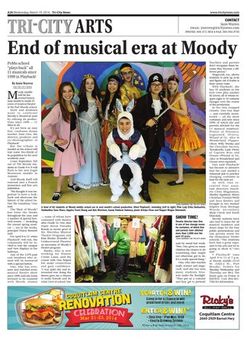 oody middle will hit the rewind button next month to mark 15 years of musical theatre at the Port Moody school. Staff and students wa n t t o c e l e b r a t e Moody’s theatrical past by reliving its productions since 1999 — 11 titles in all. It’s not been an easy feat, confesses drama teacher Jane Ono, the director, producer and co-choreographer of Playback! But the tribute is needed as the school will lose some two-thirds of its population by the next academic year. Come September, 525 out of 750 Moody students in Grade 6 to 8 will flock to the new Eagle Mountain middle in Anmore. And Moody itself will reinvent into a French immersion and fine arts institution. “We thought it was important to have a lookback and showcase the history of the school before the transition,” Ono said. The “Best of Moody” has been the theme throughout the year and a number of special farewell events — including the annual spring musical — are in the works, principal Nancy Bennett said. For April 8 to 11, when Playback! will run, the community will be invited to tour the campus and view displays in the hallways. Any of the 1,075 past cast members who attend will be honoured with a special button. Ono, who has overseen and watched every musical theatre show since 1999, said she looks forward to be reunited with Moody alumni