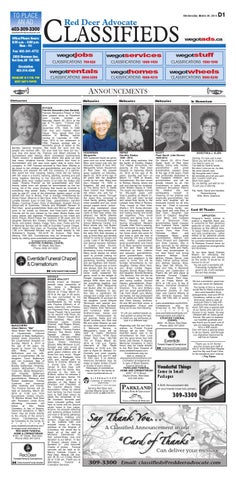 403-309-3300 classifieds@reddeeradvocate.com Office/Phone Hours: 8:30 a.m. - 5:00 p.m. Mon - Fri Fax: 403-341-4772