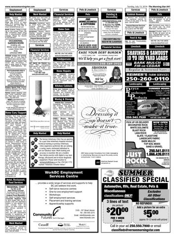 Call in your ad 250.550.7900 or email classifieds@vernonmorningstar.com