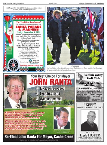 Re-Elect John Ranta For Mayor, Cache Creek Authorized by John Ranta, Financial Agent, 250-457-3290