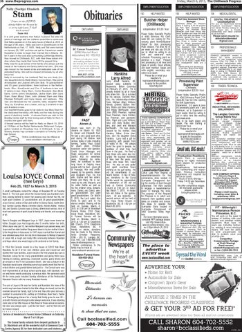 Friday, March 6, 2015, The Chilliwack Progress EMPLOYMENT/EDUCATION