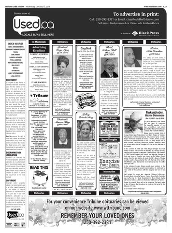 For your convenience Tribune obituaries can be viewed on our website www.wltribune.com