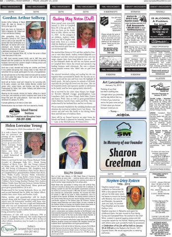 44 | CAMPBELL RIVER MIRROR | FRIDAY, JANUARY 15, 2016 A44 www.campbellrivermirror.com
