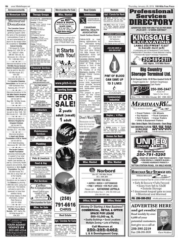 Thursday, JanuaryJanuary 28, 201628,100 Mile House Thursday, 2016 100 Mile Free Press