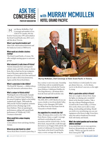 eet Murray McMullen, Chef Concierge and member of Les Clefs d’Or Canada, who has lived in Victoria since 1991 and worked at the Hotel Grand Pacific since 2013. Let’s ask him about Victoria.