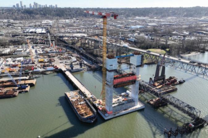 Work continues on the main tower of the Pattullo Bridge replacement on the Fraser River between Surrey and New Westminster. (Photo: twitter. com/pattulloproject)