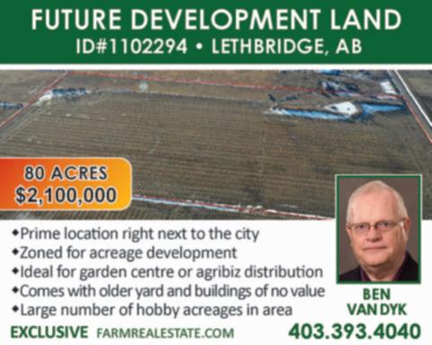 DLMS.ca. Contactyourlocal salesreptodiscuss yourvideosale marketingoptions! NoSeller’s Commission! Ph(403)380-6602 or 1-800-763-4721 2847–2Ave.N. Lethbridge,AlbertaT1H6S2 LethbridgeLtd. COMMUNICATIONS GROUP The Ultimate WirelessIntercom for yourfarmingoperation! KENWOOD MOBILERADIOS Startingat $369 1-877-463-8256 www.versaframe.ca HEADOFFICE(Nisku,AB) (780)979-0325 Holden,AB (780)385-8819 StPaul,AB (780)787-0129 LocationsacrosswesternCanada NORTHERNALBERTA Westlock,AB (780)350-8916 SOUTHERNALBERTA Torrington,AB (403)559-6059 Drumhellar,AB (403)361-0490 Lethbridge,AB (403)758-3147 MedicineHat,AB (403)525-4247 PortageLaPrairie,MB (204)871-5251 Leask,SK (306)466-7921 Biggar,SK (306)948-3776 Lumsden,SK (306)731-2066 FortSt.John,BC (250)794-6618 MANITOBA BRITISHCOLUMBIA SASKATCHEWAN “Assolidastheproductswesell.” Decker,MB (204)412-0234 GrandePrairie,AB (780)512-4705 Morris,MB (204)803-5852 METALROOFING-METALSIDING RollformedtoCustomLengths-ManufacturerDirect COMMERCIAL RESIDENTIALAGRICULTURAL