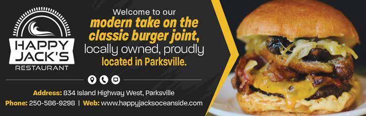 106 ISLAND VISITOR 2024 www.bayviewvi.com “TrademarksofAMRoyaltiesLimitedPartnershipusedunderlicencebyLoyaltyOne,Co.andBayviewHotelGroupLtd.” 778-225-0010 2200CliffeAvenue •Complimentaryhotbuffet breakfast •Pool,waterslideandhottub •Freewifi •EVchargingstations •24Hourfitnesscentre andbusinesscentre •Premiumchannelslike HBOandCraveTV •Coinlaundry TripAdvisor4.5out of5Excellent SCANFOR DISCOUNT Yourfamilyandbusinesshotel. Your family and business hotel. Grizzly Bear Lodge and Safari Knight Inlet Johnstone Strait British Columbia Coast grizzlybearwatching.com 250-334-8858