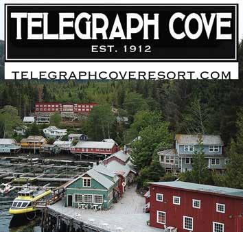 ISLAND VISITOR 2024 109 info@grizzlycanada.com 1-800-643-9319 Book your grizzly bear nature tour today! telegraphcoveresort.com info@telegraphcoveresort.com 1-800-200-4665 • Cabins, dockside suites and lodge rooms • Forest RV & tent camping • 140 berth marina and boat launch • West Coast Dining • Fishing charters north