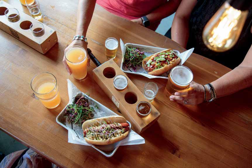 For the foodies and those needing to satisfy your hunger after a busy day outdoors, there are several restaurants and pubs offering locally grown foods, including fresh seafood like shellfish and oysters found locally in the waters of Baynes Sound. And to wet your whistle, have a pint or share a flight at a craft brewer y, or tr y a tasting at an organic or sustainable winer y.