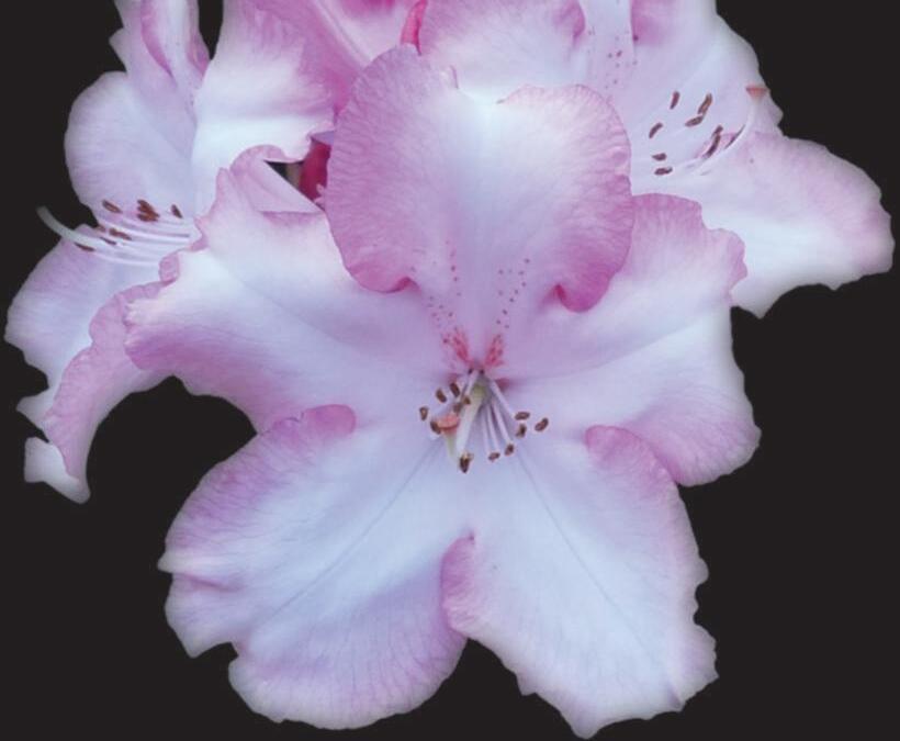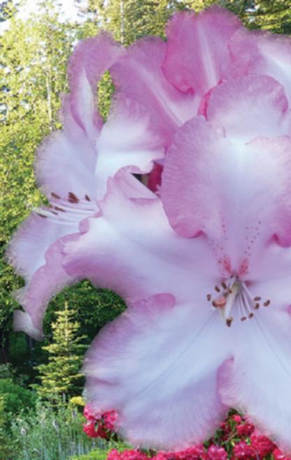 orchard by Dutch specialist Luc Linkhamer) has large flowers (5-7”) with pink outer petals, a fluffy white inside, pale yellow centre, and a sweet fragrance. The fun description is frilly vanilla cream petals that are sandwiched between layers of strawberry and raspberry ice.